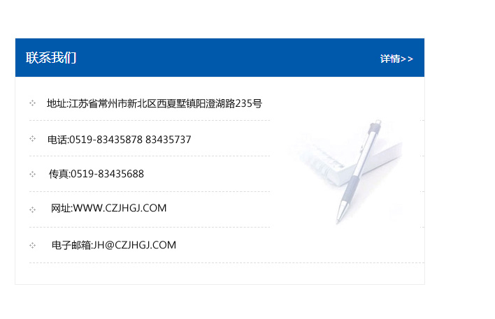 地址:常州市新北區友邦商務大廈1幢16、17層  電話:0519-85101652  傳真:0519-85112595  郵編:213022  網址:www_cz-jiayue_cn.shengmeigao.com  郵箱:xiajifengaa@163.com